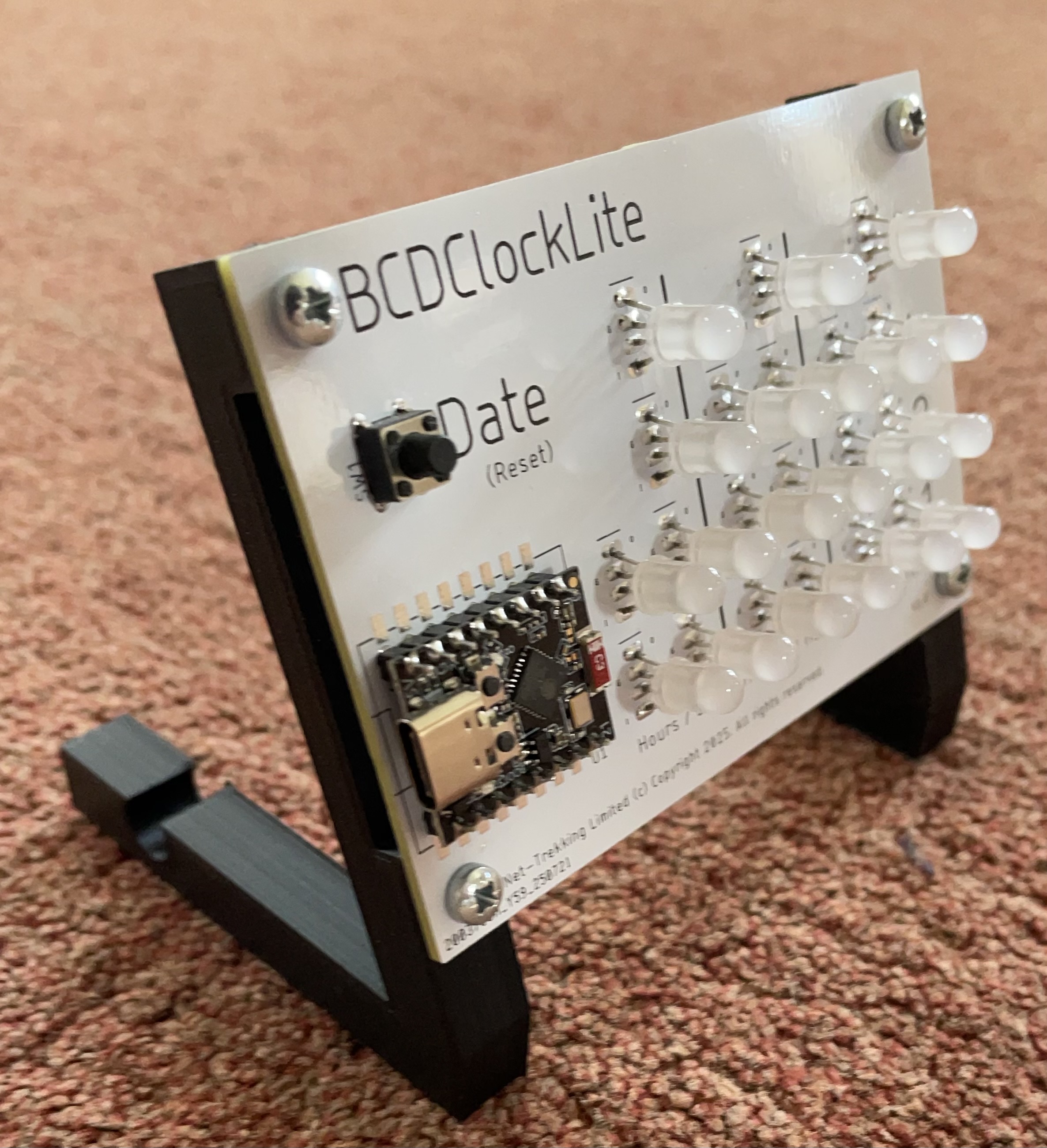 BCDCLockLite is Binary Coded Decimal Clock with a minimalistic / brutalist architecture look. The display is comprised of 20 multi-coloured LEDs driven by an ESP32C3 supermini. The clock is configured via a simple web page interface accessible from a PC / Mac / iPhone / Android / etc.